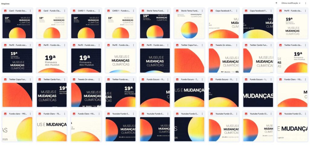 No kit digital foram disponibilizadas algumas versões de cards padrão para divulgação do evento de sua instituição. Para utilizar o card pronto, basta postar na página oficial da instituição no Facebook, no perfil do Twitter, Instagram ou outras redes sociais em que o museu esteja inscrito.